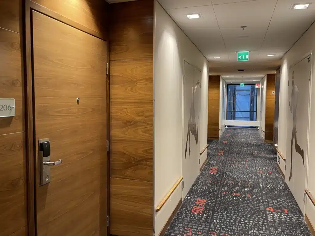 Huoneemme oli standard-huone, joka oli ihan toimiva, sängyn lisäksi oli pieni työtaso, sohva, nojatuoli, kaapistot, safetybox, minijääkaappi sekä kuivauskaappi. Huonetta oli ehostettu ja uusittu jonkin verran, mutta siinä oli kuitenkin hieman ehkä vanhahtava tunnelma. Lisäksi mainittakoon, että huoneemme seinä tärähti aina, kun naapurihuoneen ovi meni kiinni. Huone kuitenkin oli meille hyvinkin riittävä yhden yön majoitukseen.
