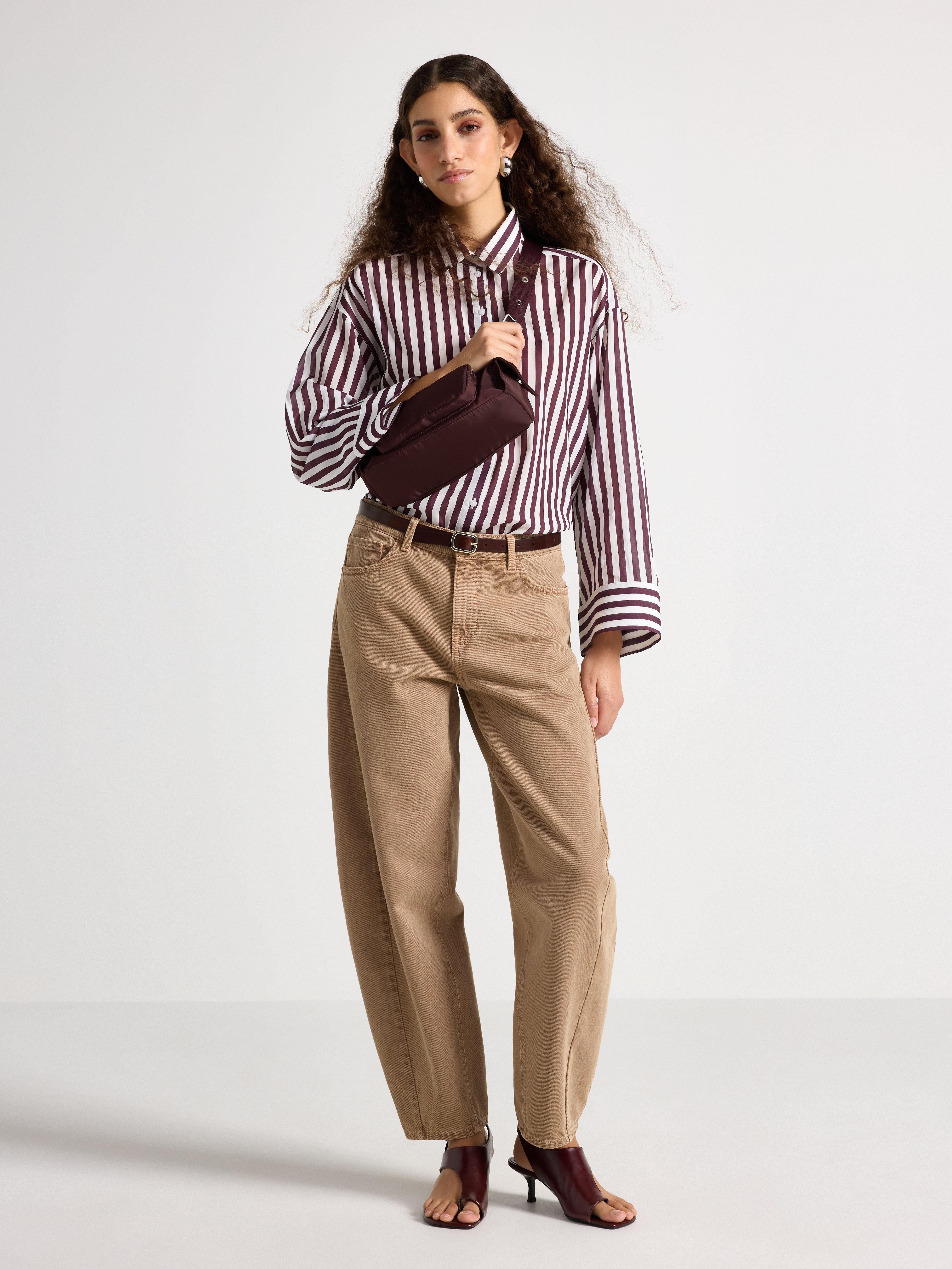 | Barrel / Balloon | Vyötäröltä kapea, polvesta leveä, nilkasta kapeneva | Vyötärö, luo omanlaisen muodon | Trenditietoisille, muotoileva look |