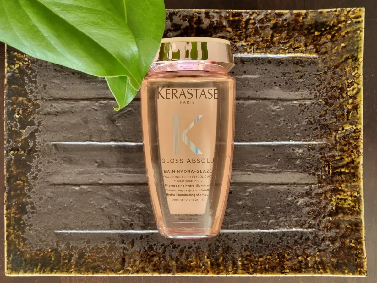 Tuotelupaus: Kérastase Gloss Absolu Bain Hydra-Glaze Shampoo on kehitetty erityisesti pitkille ja pörrööntyville hiuksille. Tuotteen luvataan tuovan hiuksiin kiiltoa, pitävän ne raikkaina pidempään ja tekevän niistä sileät ja pehmeät. Shampoon teho perustuu hyaluronihappoon, glykolihappoon ja ruusuöljyyn, jotka puhdistavat, kosteuttavat ja silottavat hiusten pintaa.